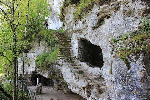 Various items from prehistoric times have been found at the site including tools and engraved bones and in 1913 the 3000 year old skeletons of an adult and adolescent were found in a burial place in the large abri.
