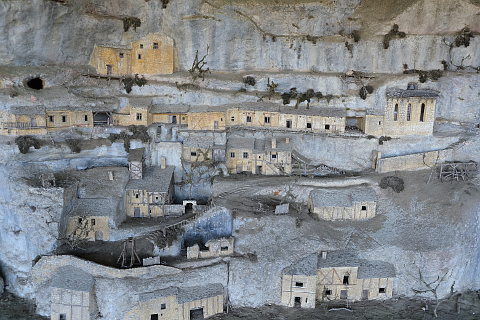 The fort was on the left side of the site and is the first part of the visit and includes the arms rooms, stable, safe and the recreation of a kitchen. You then enter a tunnel in the rock and on the other side the long length of the troglodyte village stretches ahead.