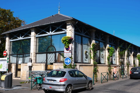 Next to the Chapter House is the arched gateway which was once the entrance to the town. Notice the very narrow Rue Daumesnil next to the gateway. On the other side of the gateway is the Place de la Republique dominated by the large covered market hall that was built in 1886. It was originally used to store grain.