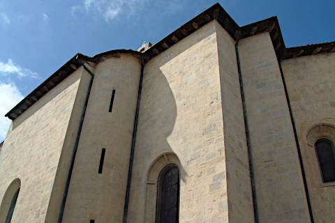 The architecture of the church is unexceptional from the outside, and is rather hard to see because of the buildings that now surround the church. The best views are from Rue Gambetta, where you can see the side of the church as well as the substantial plain walls of the chevet at the rear of the building.