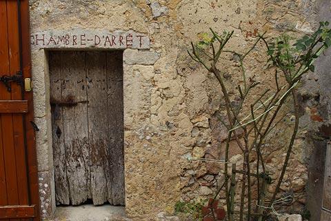 Next to the church you can see a tiny door marked "chambre d'arret". This is a small room that was used over the centuries to lock up prisoners awaiting trial. Most amusingly, it was apparently used until the 1930's when anyone in the village had drunk a bit too much and needed to be locked up for a while while they sobered up...