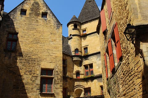 Your visit will usually start in the Place de la Liberté, a good introduction to Sarlat since it includes many fine townhouses that span the period of growth of the town as well as the Town Hall and some attractive medieval arcades.