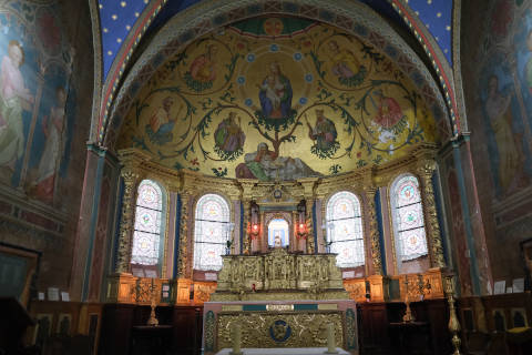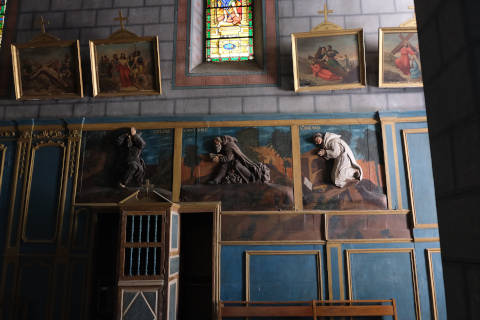 The church of Notre-Dame was built in the 17th century although the apse remains from an earler 12th century church. The belltower has four levels, each octagonal and smaller than the one below, and is in the local baroque style. There are also several small statues of the saints near the door.