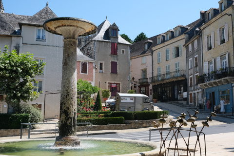 Half way up the hill is the Place Bouquier, the highlight of Terrasson old town. It has beautiful buildings surrounding it including most notably the Maison Bouquier. There is a gardened terrace with the abbey above and the paved square has a coat of arms set into it.