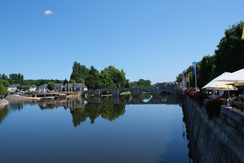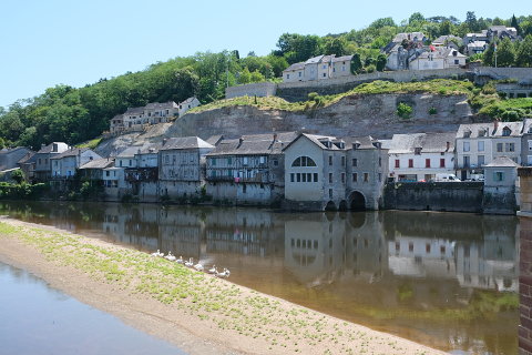 The town is dominated by the large church that stands on the hill at the top of the village, while the slowly moving Vézère River runs past the lower part of Terrasson. The river is traversed here by two bridges: a 15th century old stone bridge called 'Vieux Pont' and the 19th century Pont Neuf.