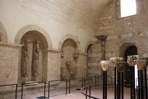 The abbey crypt is also fascinating, and one of the oldest parts of the building. It has rows of columns, with the captal stones here carved with foliage, a well and some ancient frescoes in the chapels at the end of the crypt