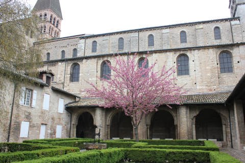 To complete your visit to the abbey at Tournus you can discover the cloister, now restored and with the walkway on one side still lined with the original massive roman style arches and columns, again with carved capital stones, and an attractive garden.