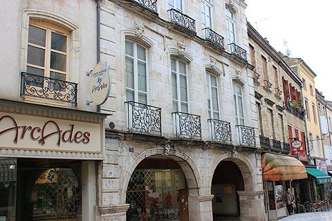 It is here that we also find the original city hospital (Hotel-Dieu). Continuing southwards you will pass the Town Hall and some more quiet old streets and reach the Church of Saint-Madeleine. The town hall is an imposing 17th century building and opposite the town hall are two other notable buildings: the gothic house with arcades and the Logis de l'Esgargot with a corner tower.
