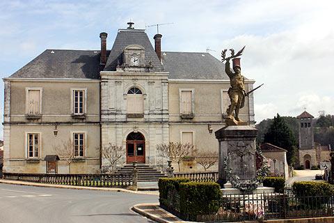 Close to here, and with a view along the whole length of the main street, is Villamblard Town Hall with the War Memorial in front.