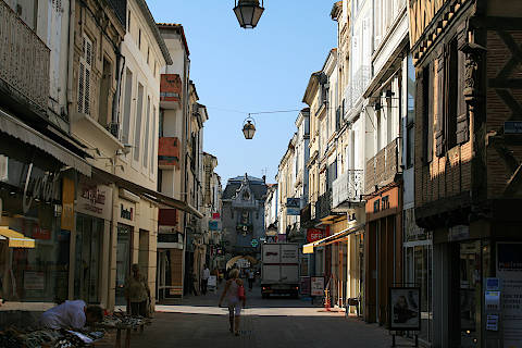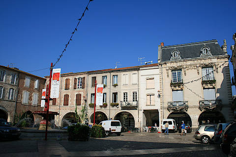 The centre of the town is now largely given over to shops (real shops not tourist shops) and makes a pleasant place to explore. Walk down the Rue de Paris - the main street between the two towers and the main shopping street of Villeneuve-sur-Lot - and on to the Place Lafayette. Place Lafayette is the main square of Villeneuve and is surrounded by arcaded shops.