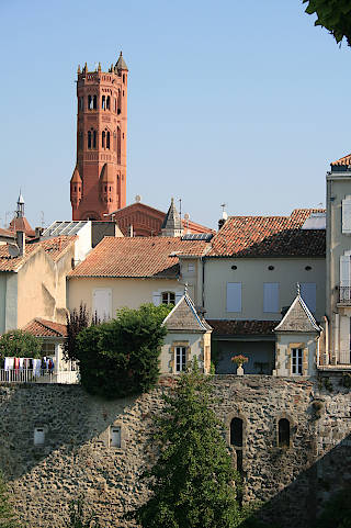 On the edge of the old town centre you can see the second gateway - the Tour de Pujols. This is built in the same style as the Paris tower and with the tower of St Catherines church these towers give Villeneuve a very interesting sky-line. Next to the Pujols Tower you can see some remains of the town’s fortifications.